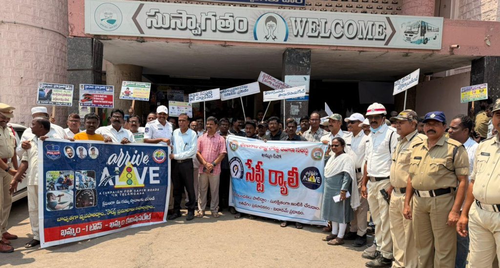 - ఖమ్మం పాత బస్టాండ్ నుండి ఘనంగా ‘అరైవ్ – అలైవ్ ’ రోడ్డు భద్రత ర్యాలీ